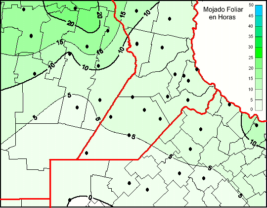 Mapa de humedad de hoja de las las últimas 120 horas.