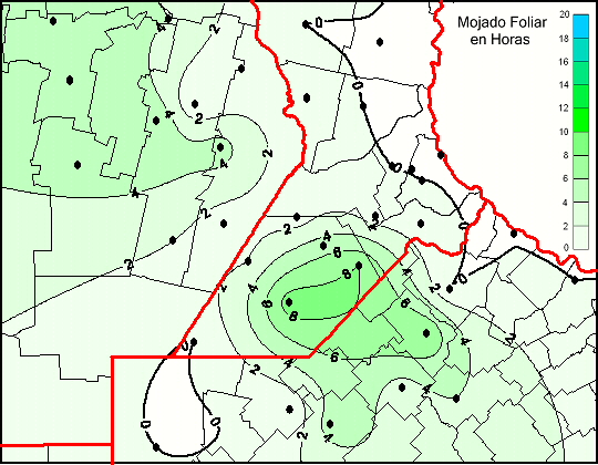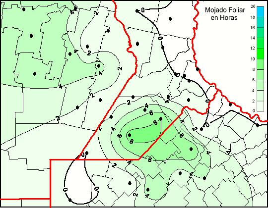 Mapa de humedad de hoja de las las últimas 48 horas.(Desde las 8:00AM hasta las 8:00AM). Se actualiza a las 10:00hs.