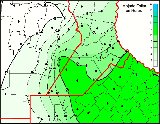 Mapa de humedad de hoja de las las últimas 48 horas.