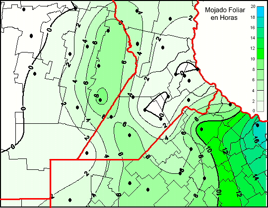 Mapa de humedad de hoja de las las últimas 120 horas.
