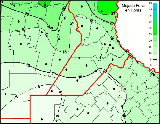 Mapa de humedad de hoja de las las últimas 48 horas.(Desde las 8:00AM hasta las 8:00AM). Se actualiza a las 10:00hs.