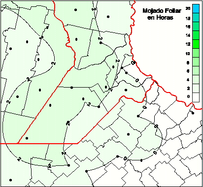 Mapa de humedad de hoja de las las últimas 48 horas.(Desde las 8:00AM hasta las 8:00AM). Se actualiza a las 10:00hs.
