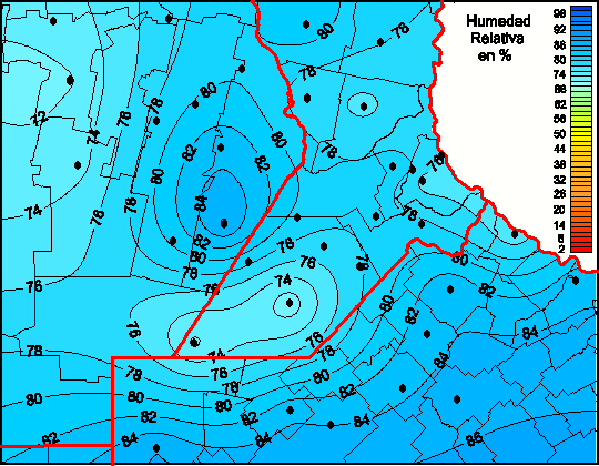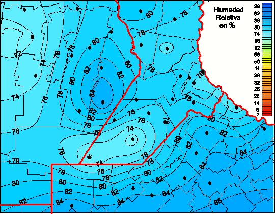 Mapa de humedad relativa de las las últimas 72 horas.(Desde las 8:00AM hasta las 8:00AM). Se actualiza a las 10:00hs.
