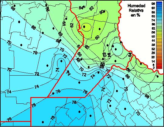 Mapa de humedad relativa de las las últimas 72 horas.(Desde las 8:00AM hasta las 8:00AM). Se actualiza a las 10:00hs.