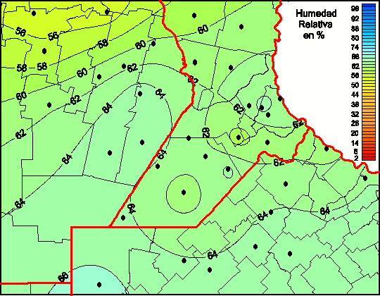 Mapa de humedad relativa de las las últimas 72 horas.(Desde las 8:00AM hasta las 8:00AM). Se actualiza a las 10:00hs.