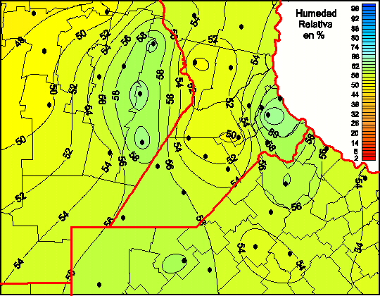 Mapa de humedad relativa de las las últimas 120 horas.(Desde las 8:00AM hasta las 8:00AM). Se actualiza a las 10:00hs.