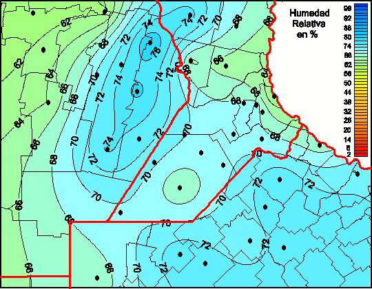 Mapa de humedad relativa de las las últimas 72 horas.(Desde las 8:00AM hasta las 8:00AM). Se actualiza a las 10:00hs.