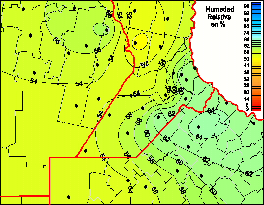 Mapa de humedad relativa de las las últimas 120 horas.(Desde las 8:00AM hasta las 8:00AM). Se actualiza a las 10:00hs.