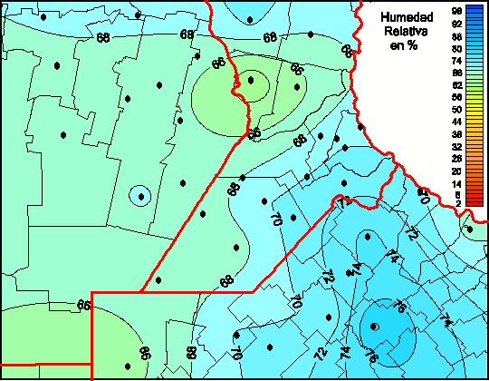 Mapa de humedad relativa de las las últimas 72 horas.(Desde las 8:00AM hasta las 8:00AM). Se actualiza a las 10:00hs.