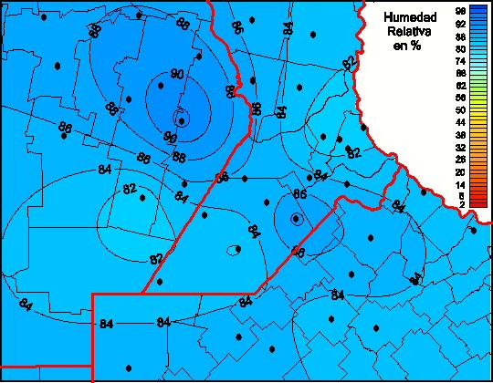 Mapa de humedad relativa de las las últimas 0 horas.(Desde las 8:00AM hasta las 8:00AM). Se actualiza a las 10:00hs.