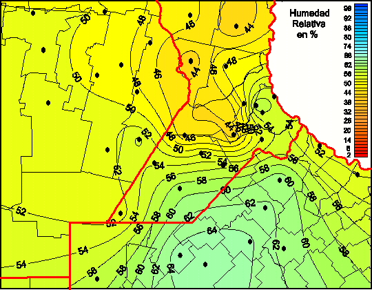 Mapa de humedad relativa de las las últimas 72 horas.(Desde las 8:00AM hasta las 8:00AM). Se actualiza a las 10:00hs.