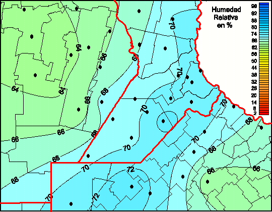 Mapa de humedad relativa de las las últimas 72 horas.(Desde las 8:00AM hasta las 8:00AM). Se actualiza a las 10:00hs.