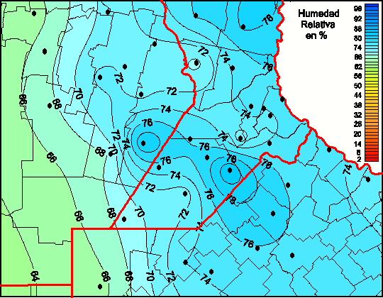 Mapa de humedad relativa de las las últimas 72 horas.(Desde las 8:00AM hasta las 8:00AM). Se actualiza a las 10:00hs.