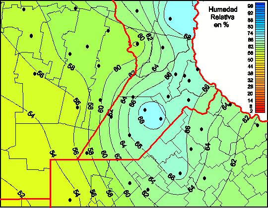 Mapa de humedad relativa de las las últimas 120 horas.(Desde las 8:00AM hasta las 8:00AM). Se actualiza a las 10:00hs.