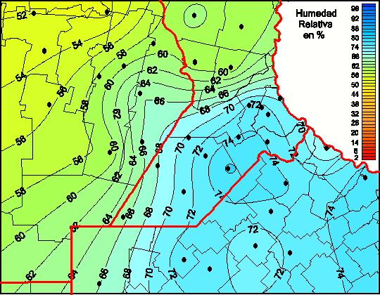 Mapa de humedad relativa de las las últimas 72 horas.(Desde las 8:00AM hasta las 8:00AM). Se actualiza a las 10:00hs.