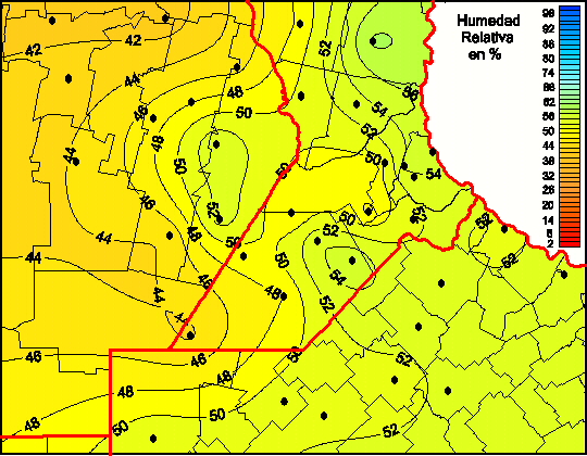 Mapa de humedad relativa de las las últimas 72 horas.(Desde las 8:00AM hasta las 8:00AM). Se actualiza a las 10:00hs.
