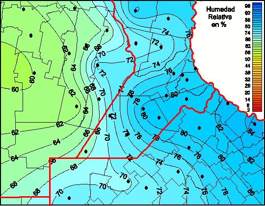 Mapa de humedad relativa de las las últimas 72 horas.(Desde las 8:00AM hasta las 8:00AM). Se actualiza a las 10:00hs.