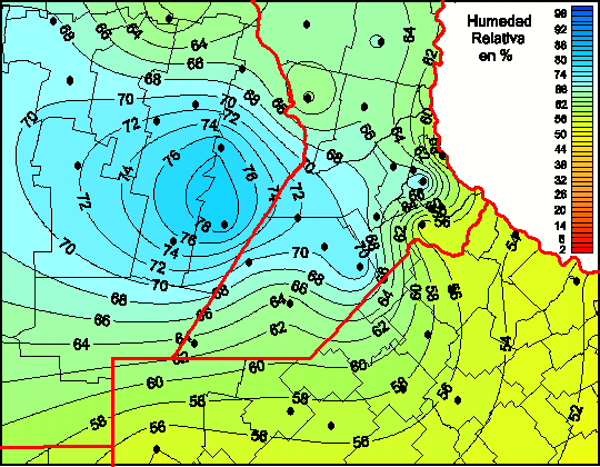 Mapa de humedad relativa de las las últimas 72 horas.(Desde las 8:00AM hasta las 8:00AM). Se actualiza a las 10:00hs.
