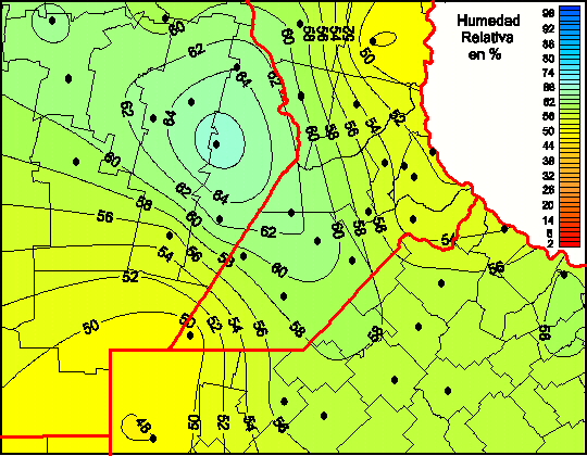 Mapa de humedad relativa de las las últimas 72 horas.(Desde las 8:00AM hasta las 8:00AM). Se actualiza a las 10:00hs.