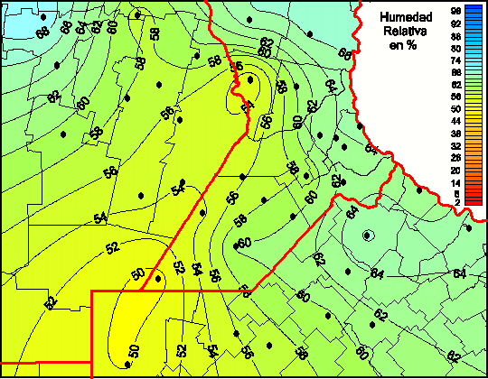 Mapa de humedad relativa de las las últimas 72 horas.(Desde las 8:00AM hasta las 8:00AM). Se actualiza a las 10:00hs.