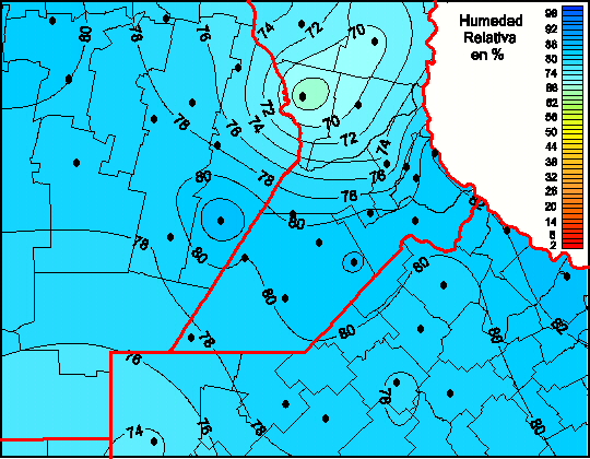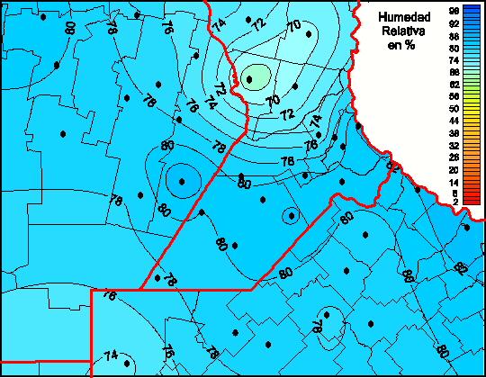 Mapa de humedad relativa de las las últimas 72 horas.(Desde las 8:00AM hasta las 8:00AM). Se actualiza a las 10:00hs.