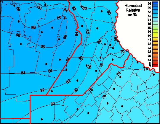Mapa de humedad relativa de las las últimas 72 horas.(Desde las 8:00AM hasta las 8:00AM). Se actualiza a las 10:00hs.