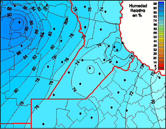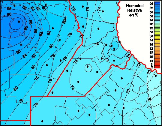 Mapa de humedad relativa de las las últimas 120 horas.(Desde las 8:00AM hasta las 8:00AM). Se actualiza a las 10:00hs.
