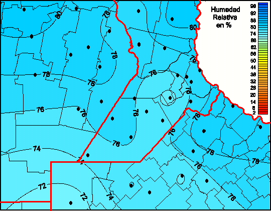 Mapa de humedad relativa de las las últimas 72 horas.(Desde las 8:00AM hasta las 8:00AM). Se actualiza a las 10:00hs.