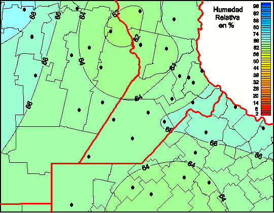 Mapa de humedad relativa de las las últimas 120 horas.(Desde las 8:00AM hasta las 8:00AM). Se actualiza a las 10:00hs.