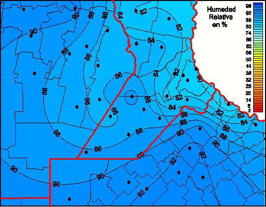 Mapa de humedad relativa de las las últimas 120 horas.(Desde las 8:00AM hasta las 8:00AM). Se actualiza a las 10:00hs.