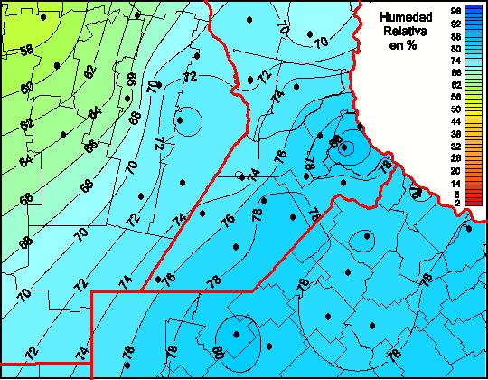 Mapa de humedad relativa de las las últimas 72 horas.(Desde las 8:00AM hasta las 8:00AM). Se actualiza a las 10:00hs.