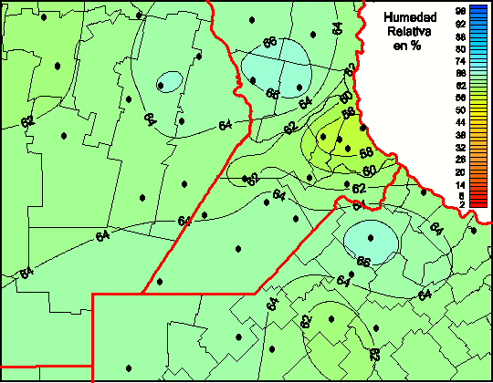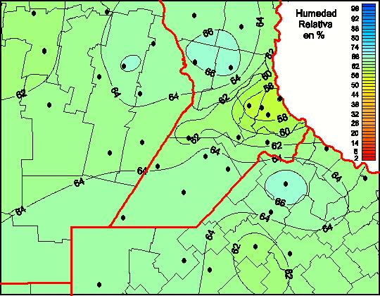Mapa de humedad relativa de las las últimas 72 horas.(Desde las 8:00AM hasta las 8:00AM). Se actualiza a las 10:00hs.