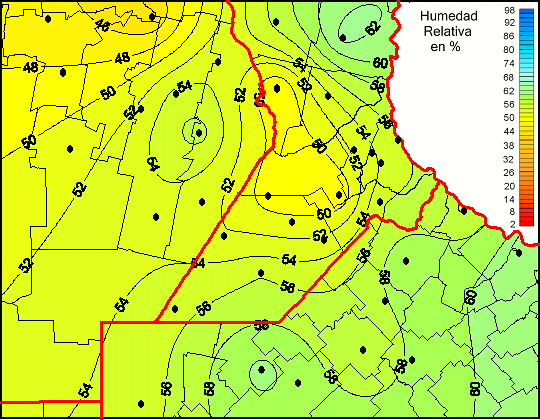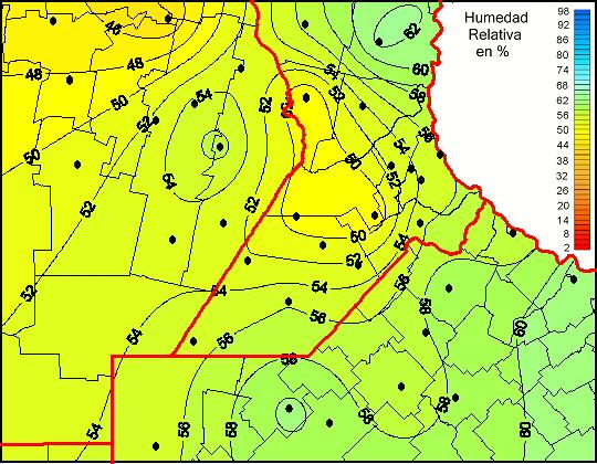 Mapa de humedad relativa de las las últimas 72 horas.(Desde las 8:00AM hasta las 8:00AM). Se actualiza a las 10:00hs.