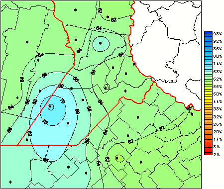 Mapa de humedad relativa de las las últimas 72 horas.(Desde las 8:00AM hasta las 8:00AM). Se actualiza a las 10:00hs.