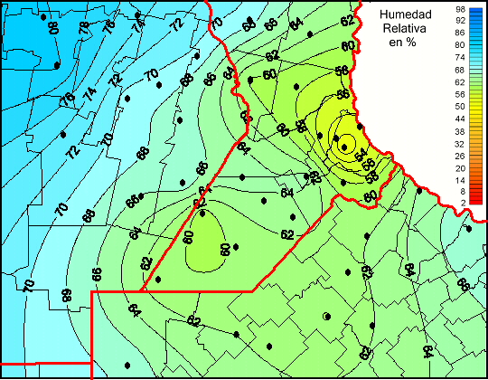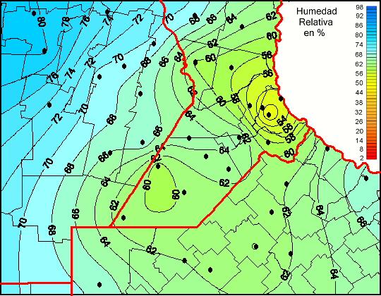 Mapa de humedad relativa de las las últimas 120 horas.(Desde las 8:00AM hasta las 8:00AM). Se actualiza a las 10:00hs.