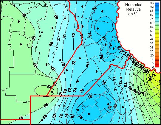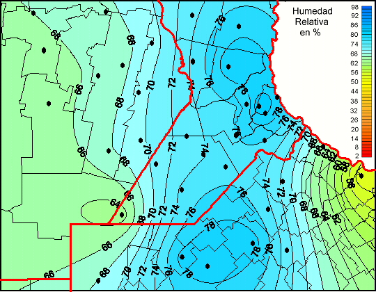 Mapa de humedad relativa de las las últimas 72 horas.(Desde las 8:00AM hasta las 8:00AM). Se actualiza a las 10:00hs.