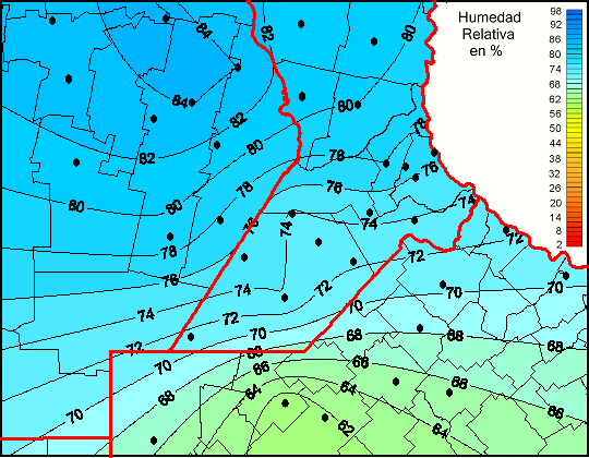 Mapa de humedad relativa de las las últimas 72 horas.(Desde las 8:00AM hasta las 8:00AM). Se actualiza a las 10:00hs.