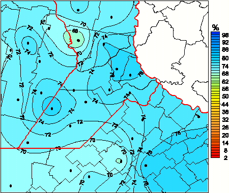 Mapa de humedad relativa de las las últimas 72 horas.(Desde las 8:00AM hasta las 8:00AM). Se actualiza a las 10:00hs.