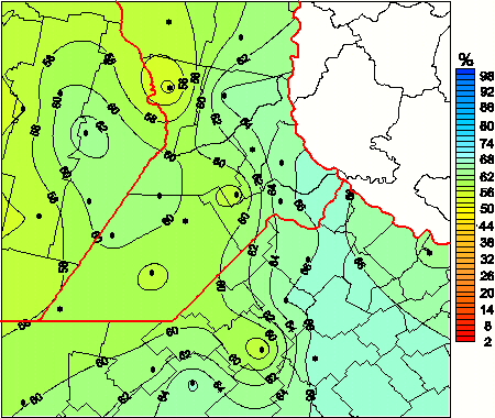 Mapa de humedad relativa de las las últimas 72 horas.(Desde las 8:00AM hasta las 8:00AM). Se actualiza a las 10:00hs.