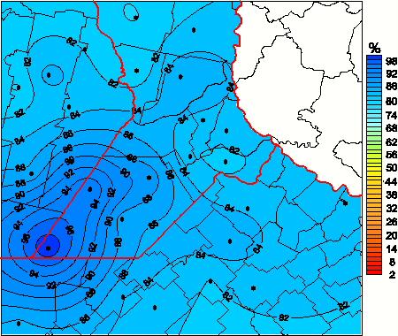 Mapa de humedad relativa de las las últimas 72 horas.(Desde las 8:00AM hasta las 8:00AM). Se actualiza a las 10:00hs.