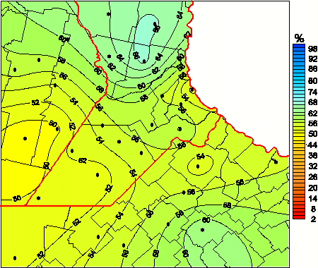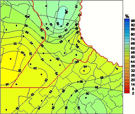 Mapa de humedad relativa de las las últimas 72 horas.(Desde las 8:00AM hasta las 8:00AM). Se actualiza a las 10:00hs.