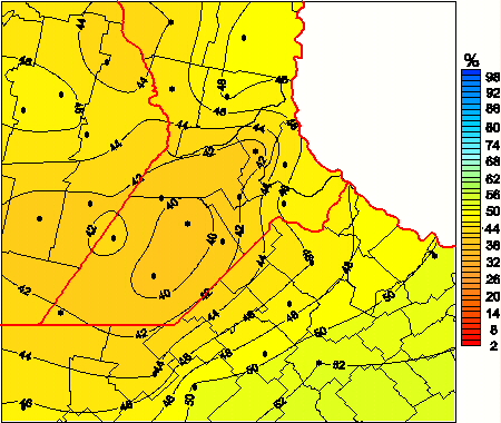 Mapa de humedad relativa de las las últimas 72 horas.(Desde las 8:00AM hasta las 8:00AM). Se actualiza a las 10:00hs.