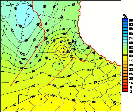 Mapa de humedad relativa de las las últimas 72 horas.(Desde las 8:00AM hasta las 8:00AM). Se actualiza a las 10:00hs.