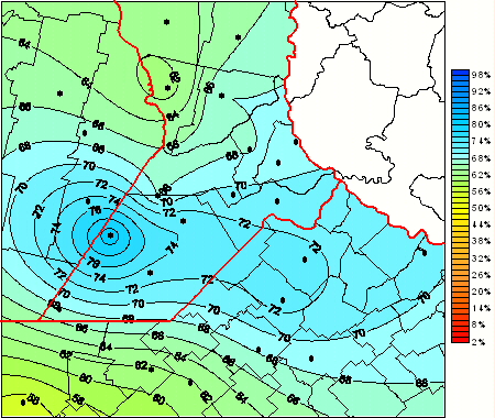 Mapa de humedad relativa de las las últimas 72 horas.(Desde las 8:00AM hasta las 8:00AM). Se actualiza a las 10:00hs.