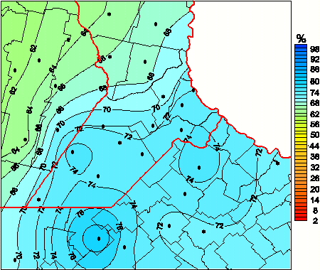 Mapa de humedad relativa de las las últimas 72 horas.(Desde las 8:00AM hasta las 8:00AM). Se actualiza a las 10:00hs.