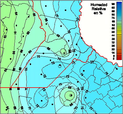 Mapa de humedad relativa de las las últimas 72 horas.(Desde las 8:00AM hasta las 8:00AM). Se actualiza a las 10:00hs.