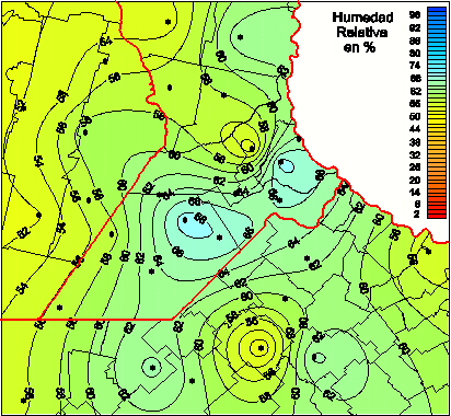 Mapa de humedad relativa de las las últimas 0 horas.(Desde las 8:00AM hasta las 8:00AM). Se actualiza a las 10:00hs.
