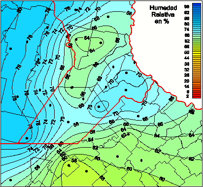 Mapa de humedad relativa de las las últimas 120 horas.(Desde las 8:00AM hasta las 8:00AM). Se actualiza a las 10:00hs.