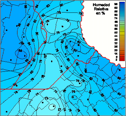 Mapa de humedad relativa de las las últimas 72 horas.(Desde las 8:00AM hasta las 8:00AM). Se actualiza a las 10:00hs.