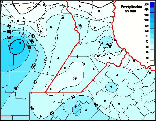 Mapa de precipitación acumulada en las últimas 72 horas.(Desde las 8:00AM hasta las 8:00AM). Se actualiza a las 10:00hs.